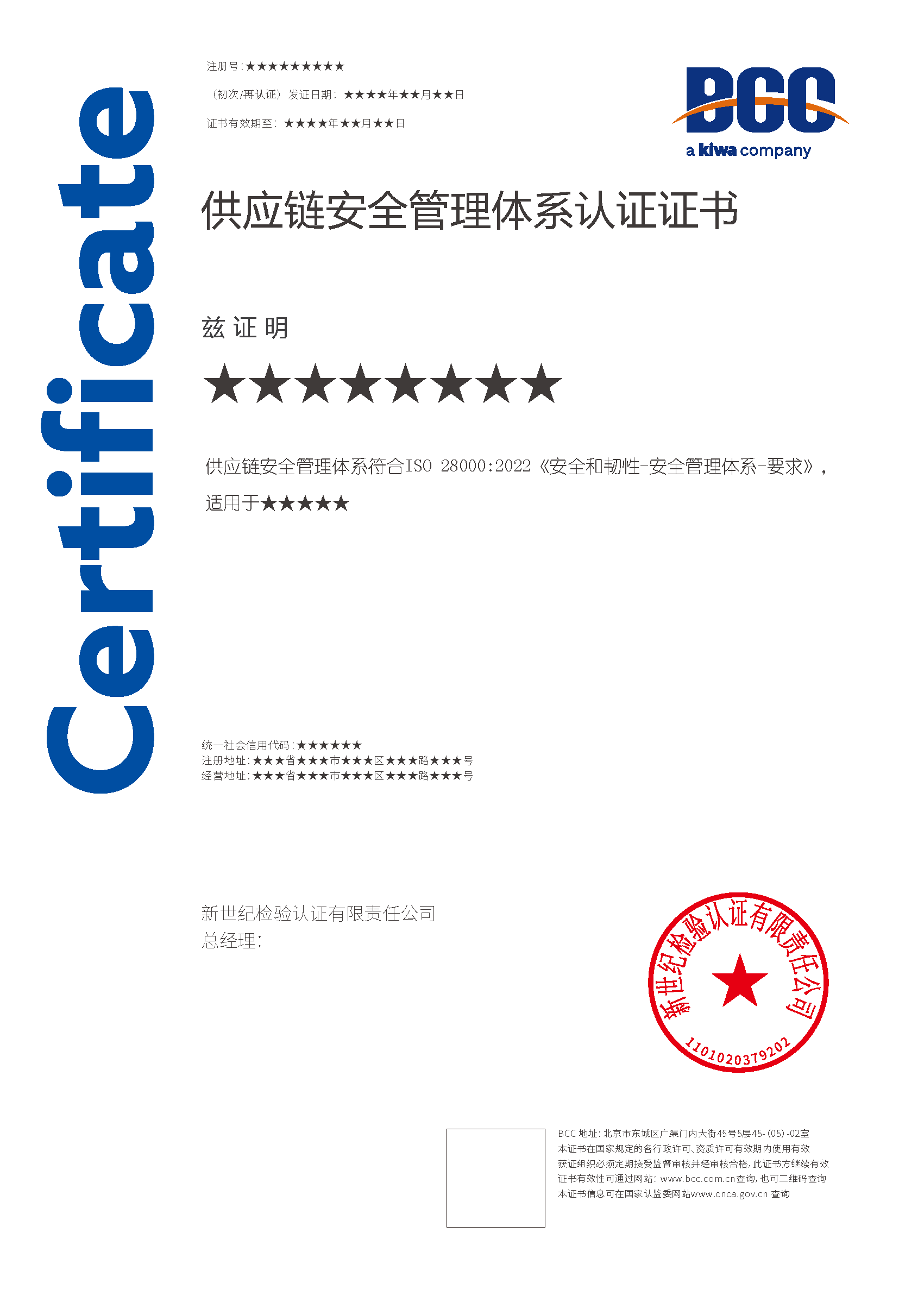 本頁涉及的認證服務(wù)中均有對應(yīng)的《認證實施規(guī)則》,BCC擁有其最終解釋權(quán)。任何組織及個人未經(jīng)BCC許可,不得以任何形式全部或部分使用(法律要求除外)認證相關(guān)信息。如需獲取相關(guān)實施規(guī)則請用以下方式聯(lián)系獲取:電話:010-58579316 郵箱:fwjs@kiwa.cn