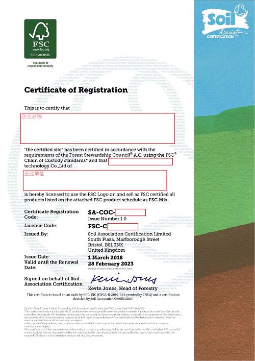 產(chǎn)銷(xiāo)監(jiān)管鏈認(rèn)證證書(shū) FSC證書(shū)