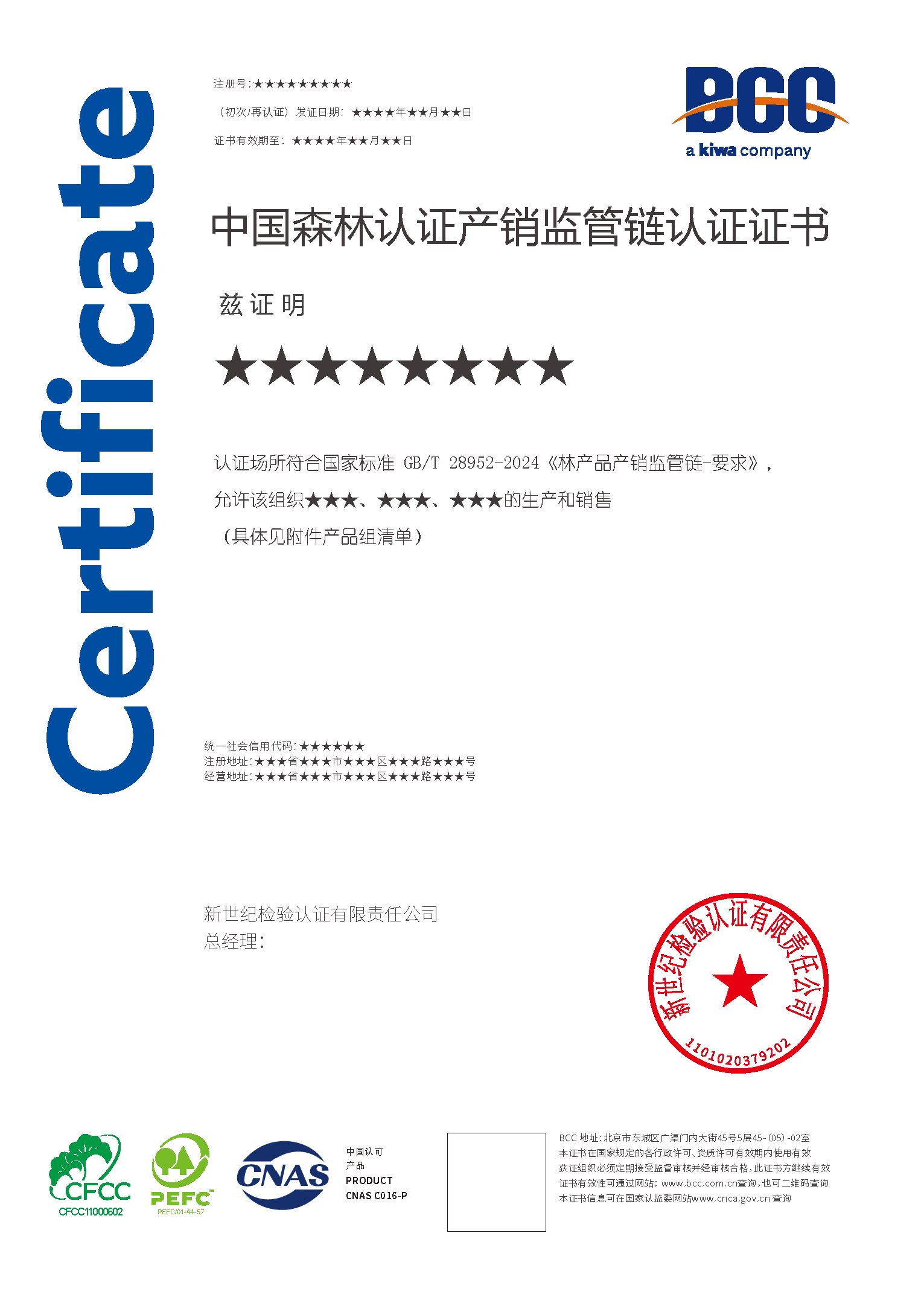 Kiwa BCC已經(jīng)獲得英國(guó)土壤協(xié)會(huì)SA授權(quán),可在中國(guó)開(kāi)展FSC®產(chǎn)銷(xiāo)監(jiān)管鏈認(rèn)證(FSC® N001893)和PEFC產(chǎn)銷(xiāo)監(jiān)管鏈認(rèn)證。同時(shí),可為組織提供CFCC產(chǎn)銷(xiāo)監(jiān)管鏈認(rèn)證服務(wù)。
