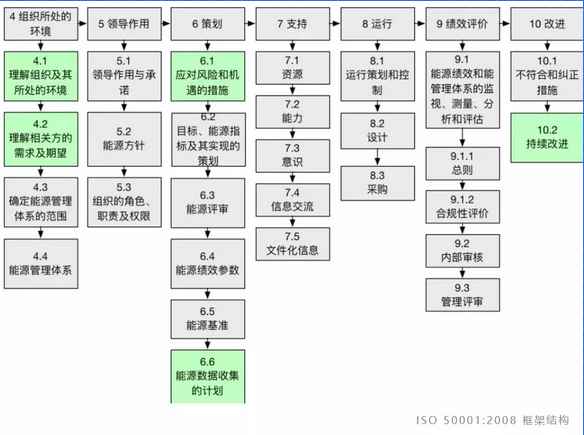 能源管理體系就是運(yùn)用管理手段、系統(tǒng)思想、過(guò)程方法、PDCA途徑和持續(xù)改進(jìn),對(duì)所控制的對(duì)象進(jìn)行系統(tǒng)的控制管理,它為企業(yè)能源管理提供了基本準(zhǔn)則,使企業(yè)建立測(cè)量、管理、改進(jìn)能源管理的體系,并使之規(guī)范化、文件化。它強(qiáng)調(diào)能源管理的透明度,覆蓋組織與能源管理有關(guān)的內(nèi)部過(guò)程和外包過(guò)程,是組織明確企業(yè)能源管理的過(guò)程和應(yīng)關(guān)注的重點(diǎn),對(duì)強(qiáng)化結(jié)構(gòu)節(jié)能與技術(shù)節(jié)能,促進(jìn)企業(yè)構(gòu)建長(zhǎng)效節(jié)能機(jī)制具有重要意義。