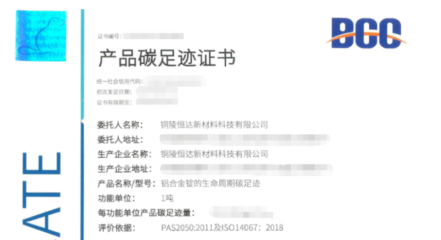 健全綠色發(fā)展,Kiwa BCC為銅陵恒達(dá)頒發(fā)產(chǎn)品碳足跡核查證書