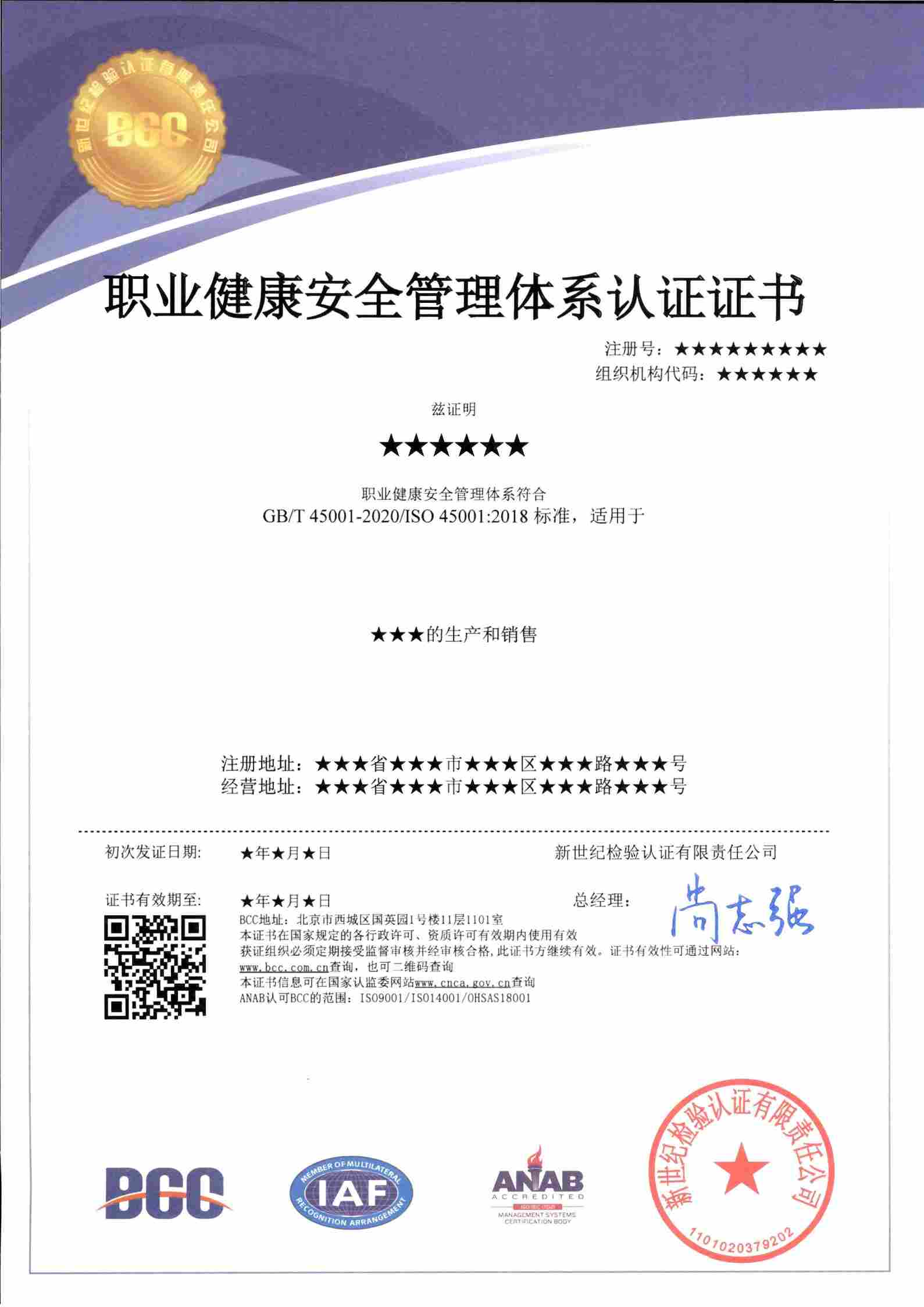由上您可以看到:上面的標志有BCC認證機構標識、IAF認可標識、ANAB標識、CNAS標識等。