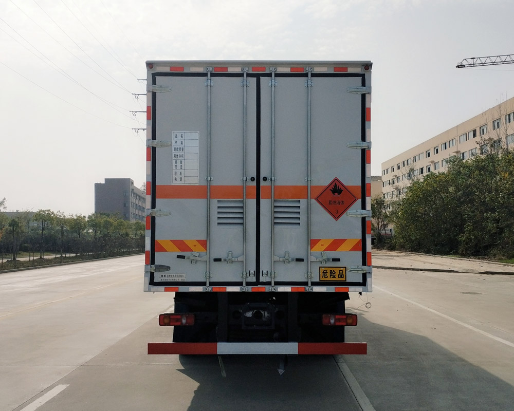 | 配置 | 1、該車為危險(xiǎn)品運(yùn)輸車.運(yùn)輸具有**容器(瓶)包裝的易燃液體物品.運(yùn)送危險(xiǎn)物品類項(xiàng)號:3類.廂體頂部封閉不可開啟.2、側(cè),后防護(hù)材料均為Q235,螺栓連接,后防護(hù)截面尺寸(mm)120×60,下邊緣離地高490mm.3、僅選用排氣管前置、限速裝置(限速80km/h)、前輪盤式制動及子午線輪胎的底盤,轉(zhuǎn)向輪安裝輪胎爆胎應(yīng)急防護(hù)裝置.后軸采用空氣懸架.安裝帶有衛(wèi)星定位功能的行駛記錄儀.EBS型號/廠家:EBS5/東科克諾爾商用車制動系統(tǒng)(十堰)有限公司.發(fā)動機(jī)/油耗值(L/100km)對應(yīng)關(guān)系為:B6.2NS6B230/36.1,B6.2NS6B245/36.1.整車長度/軸距/后懸對應(yīng)關(guān)系為(mm):10180/1995+4200/2555,11080/1995+5000/2655.隨底盤選裝駕室.該車型可選裝ETC車載裝置.廂體側(cè)面選裝開門型式及位置,選裝不帶側(cè)開門,選裝貨廂平面或瓦楞結(jié)構(gòu);廂體側(cè)面板選裝開百葉窗,選裝后部樣式.選裝尾板,尾板質(zhì)量為550kg,尾板收起狀態(tài)水平長度為290mm. | ||