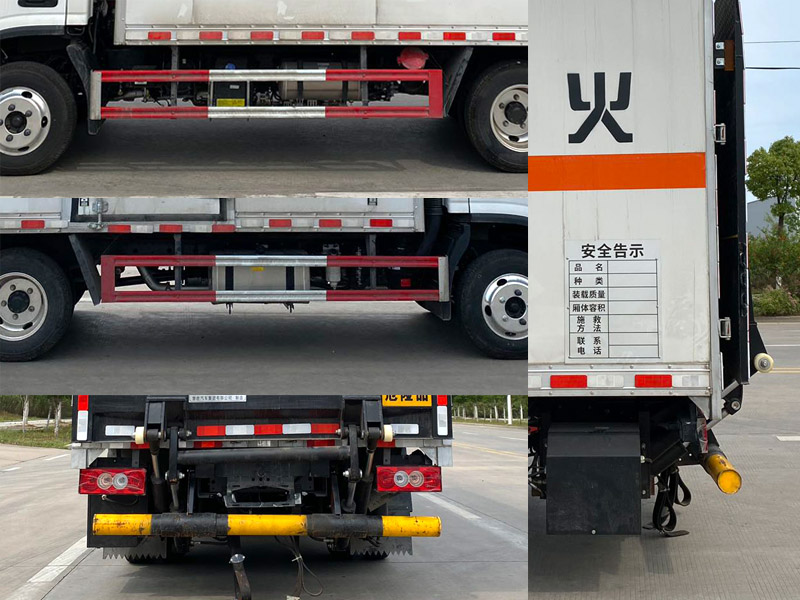 | 其它: | 1、該車為危險品運(yùn)輸車,運(yùn)輸具有獨(dú)立容器(瓶)包裝的物品,運(yùn)送危險物品類項號:9。廂體頂部封閉,不可開啟。2、側(cè)、后防護(hù)材料均為Q235,螺栓連接,后防護(hù)截面尺寸(mm)Φ100,下邊緣離地高390mm。選裝后部無尾板時,后防護(hù)材料為Q235,螺栓連接,截面尺寸(mm)120×60,下邊緣離地高400mm。尾板收起狀態(tài)水平長度為280mm,尾板質(zhì)量為350kg。3、整備質(zhì)量含備胎,滅火器及隨車工具;貨廂重量為1050kg;材質(zhì)/厚度:復(fù)合板結(jié)構(gòu)廂體:底板材質(zhì)為Q235,厚度4mm,側(cè)板為外Q235+中間阻燃泡沫+內(nèi)純鋁板,厚度42mm;瓦楞板結(jié)構(gòu)廂體:底板材質(zhì)為Q235,厚度4mm,側(cè)板為Q235,厚度1.5mm。4、僅選用排氣管前置、限速裝置(限速80km/h)、前輪盤式制動及子午線輪胎的底盤,轉(zhuǎn)向輪安裝輪胎爆胎應(yīng)急防護(hù)裝置。安裝帶有衛(wèi)星定位功能的行駛記錄儀。ABS系統(tǒng)控制器型號/生產(chǎn)企業(yè): :YF8/武漢元豐汽車電控系統(tǒng)有限公司,ABS-E/威伯科汽車控制系統(tǒng)(中國)有限公司,ABS-VI·E/廣州瑞立科密汽車電子股份有限公司,YF9/武漢元豐汽車電控系統(tǒng)有限公司。發(fā)動機(jī)/油耗值(L/100km)對應(yīng)關(guān)系為: D20TCIF2/11.22,D25TCIF1/11.16, D20TCIF1/11.22。僅選用3360mm軸距,選裝ETC。廂體側(cè)面選裝開門型式及位置,選裝不帶側(cè)開門,選裝瓦楞板結(jié)構(gòu);廂體前后及側(cè)面選裝開百葉窗,選裝后尾板樣式,選裝無后尾板。 |