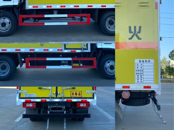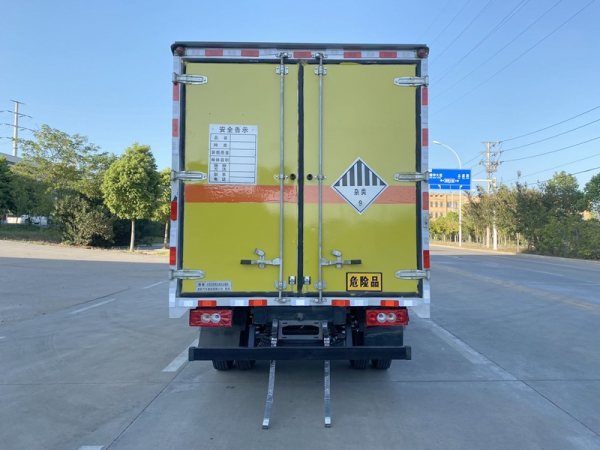 嚴(yán)格按照公告尺寸制作。外板采用優(yōu)質(zhì)冷軋鋼板帶百葉窗,內(nèi)飾為導(dǎo)電性能良好的鋁平板有透氣孔,矩形骨架結(jié)構(gòu)內(nèi)部填充防潮阻燃擠朔板,復(fù)合加鉚合工藝。廂體四周鋁合金包邊及包角,車廂底板鋪設(shè)防靜電膠皮,廂體前臉50公分高鋪設(shè)防靜電膠皮。后部設(shè)置對(duì)開(kāi)門,可選裝側(cè)門位置,廂體內(nèi)部?jī)蓚?cè)安裝捆綁貨物的臥環(huán)。廂體內(nèi)部安裝氣體感應(yīng)器及防盜報(bào)警器。車廂一周粘貼橙色放光帶,箱體粘貼 菱形告示牌,安全告示牌,危險(xiǎn)品牌,箱體安裝示廓燈(前白后紅),拖地靜電帶。箱體可選裝瓦楞板工藝。